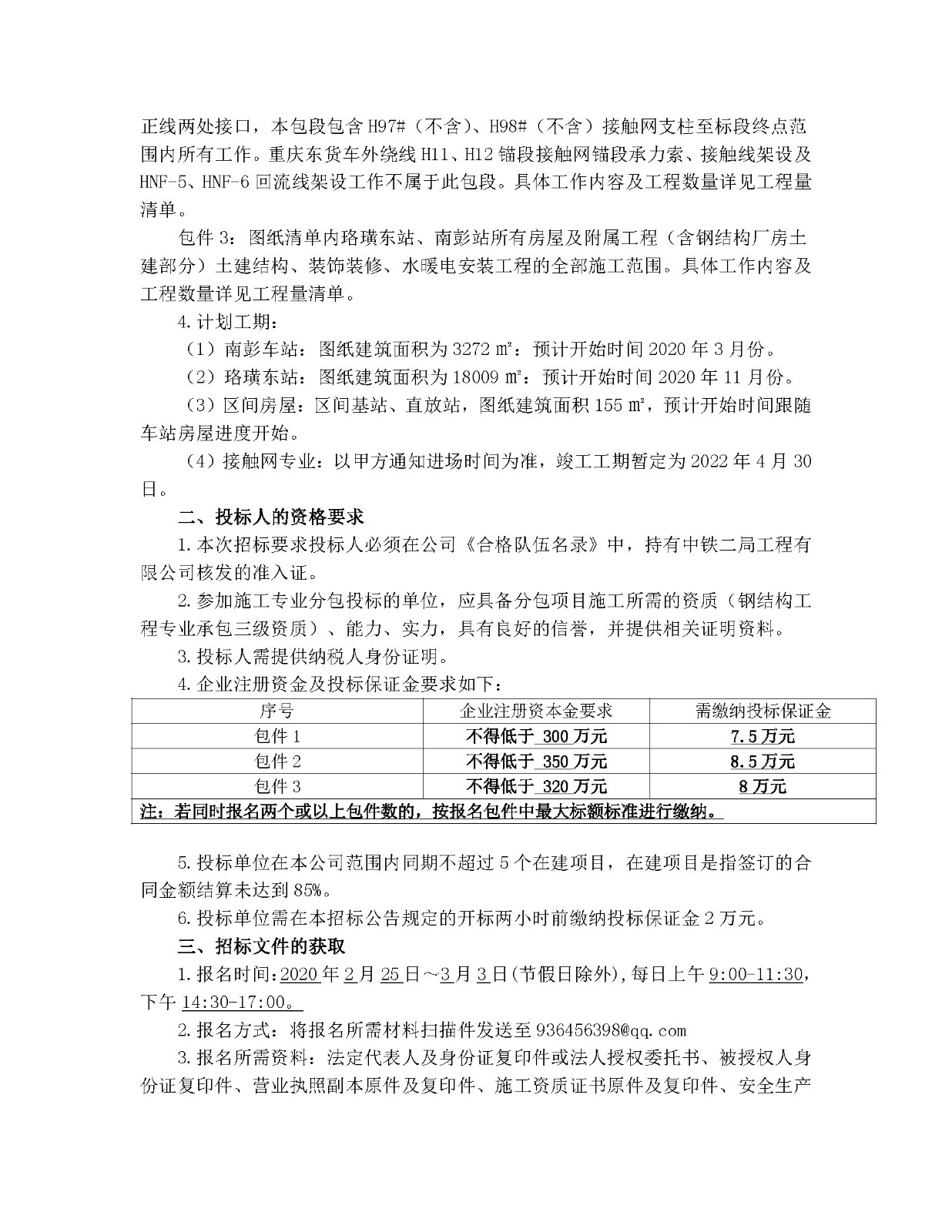 【招标公告】-重庆枢纽东环铁路电气化工程-房建、接触网劳务分包