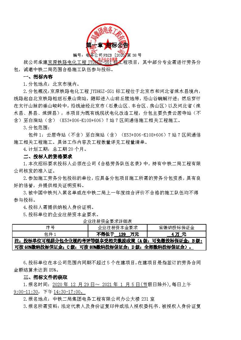 招标公告-京原铁路电化工程JYDHGZ-SG1标工程项目(通信信息专业)