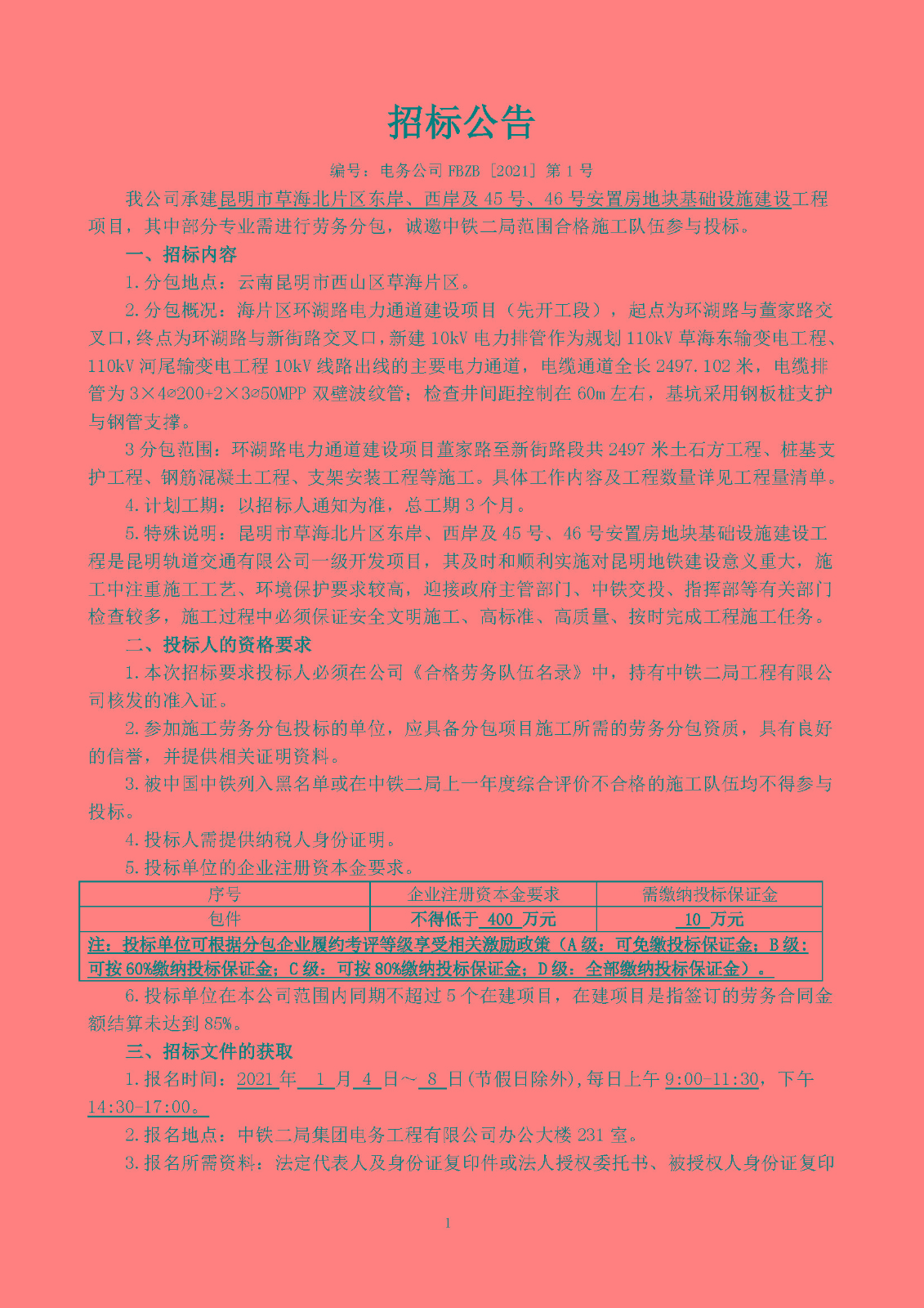 【分包招标公告】昆明市草海北片区东岸、西岸及45号、46号安置房地块基础设施建设项目