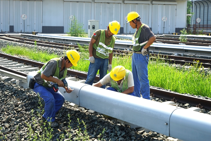26日上午,在项目部工程部、安环部、办公室的推动下,拆除工作正式开始。拆除过程中,工程部提供方便快捷的技术方案,指导作业队完成验电、接地、拆除工作;安环部确保施工过程安全,提醒作业队及时改正不规范操作;办公室负责留存影像资料,同时发扬公司以人为本的精神,为作业队提供防暑降温药物,在北京持续的高温天气下保障民工的身体健康。在接下来的三天里,项目部与作业队通力合作,高效率、零事故的完成了临时库库外接触轨拆除工作,监理全程见证并肯定了项目部的施工组织能力。本次拆除工作赢得了内外好评,同时为后续临时库全面拆除吹响了号角。