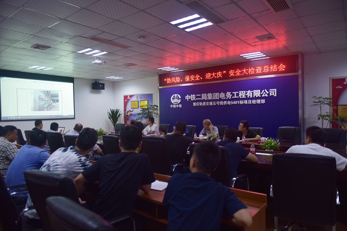 9月2日至3日,为切实贯彻落实中国中铁、集团公司二季度安全质量视频会议精神,公司第七检查组在公司副总经理孙思松的带领下,来到重庆轨道交通五号线一期工程站后项目部,开展“防风险、保安全、迎大庆”检查活动。