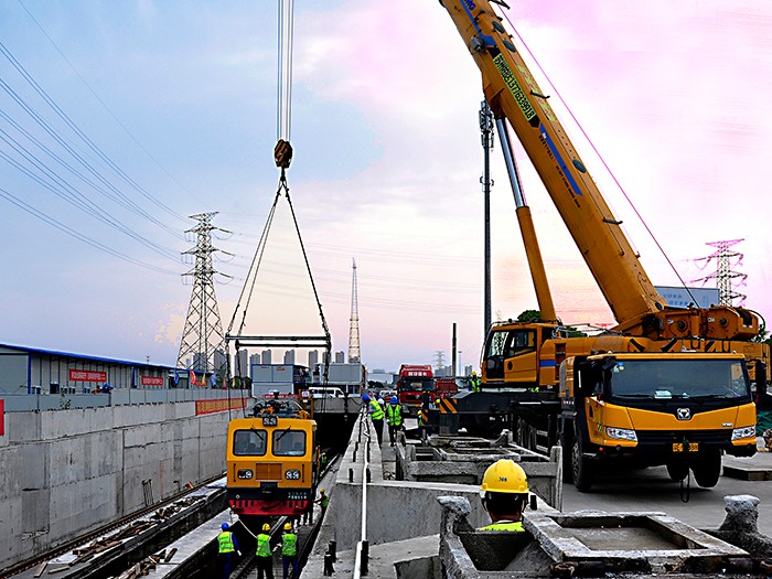 项目部本着开工即决战的理念,全员拧成一股绳,为保安全、保质量、保工期、保节点奋战。今年在新冠疫情影响下,施工作业时间大幅缩短,项目部一手抓防疫,一手抓复工,复工即进入大干阶段。复工20天,完成所有供电所设备吊装,复工43天,轨道安装车组集结投入使用,项目复工取得较大成效。