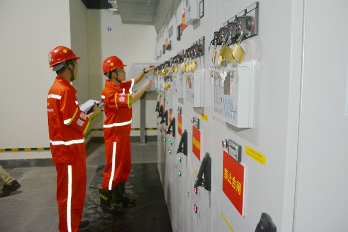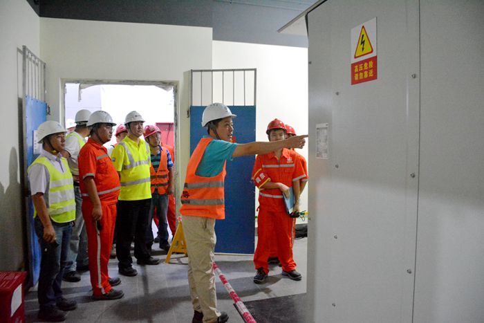 为确保一次送电成功,圆满兑现业主里程碑节点目标,项目部主动出击,精心组织,周密部署,编制了详细的《变电所送电启动方案》,成立了送电开通领导机构和应急事故抢修队,明确责任,落实分工,细化送电步骤,并在送电前组织相关人员进行现场检查及送电演练,整个送电过程有条不紊。