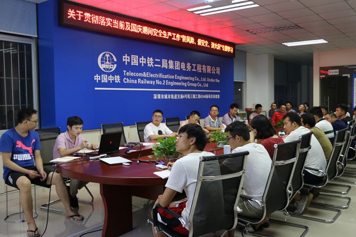 近两日,深圳4号线通信项目分别在项目部和作业队开展“防风险保安全 迎大庆”专题学习,贯彻落实全国安全生产电视电话会议和中国中铁、中铁二局二季度视频会议精神,切实做好当前和今后每个时期全项目安全生产工作。安质部长梁由胜主持会议,项目经理袁绍军、总工杨洁、项目全体人员以及作业队全体人员参加此次会议。