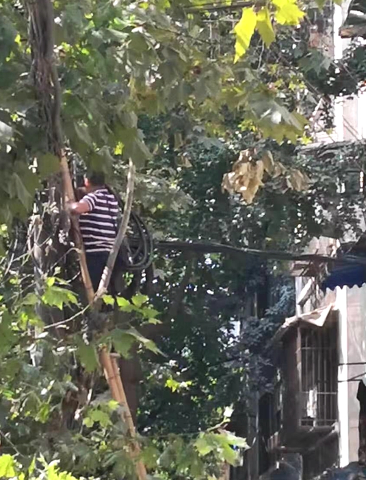 8月16日清晨,智能化分公司通信中心接到无数故障报修的电话。得到消息的工长宋建林立即组织人员带上抢修工具,奔赴现场,仔细查找障碍点。根据多年的经验,他们很快发现在铁路新村的沙洲街通信电缆被盗割,他们立即报警,并同时商讨抢修方案。